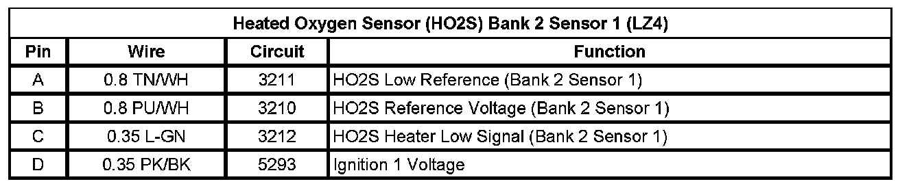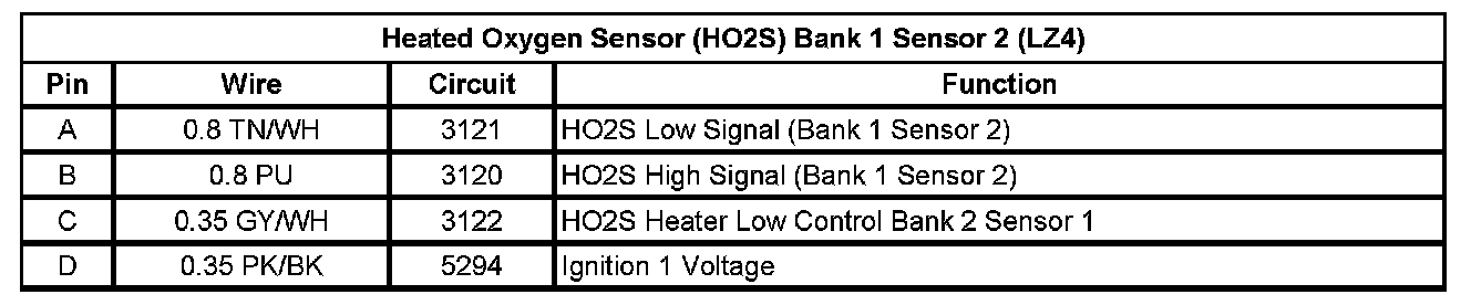 Heated Oxygen Sensor (HO2S) Bank 2 Sensor 1 (LZ4)