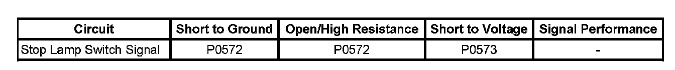 The ECM detects a high voltage signal on the stop lamp switch signal circuit when the serial data message from the BCM indicates the brakes are not applied.
