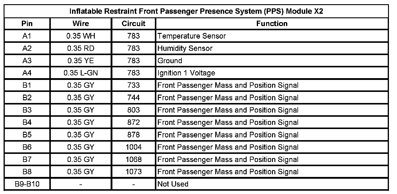 Inflatable Restraint Front Passenger Presence System (PPS) Module X2
