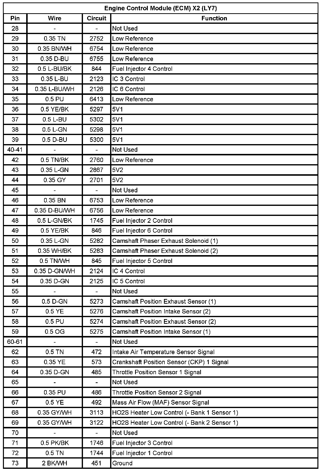 Engine Control Module (ECM) X2 (LY7) (Pin 28 To 73):