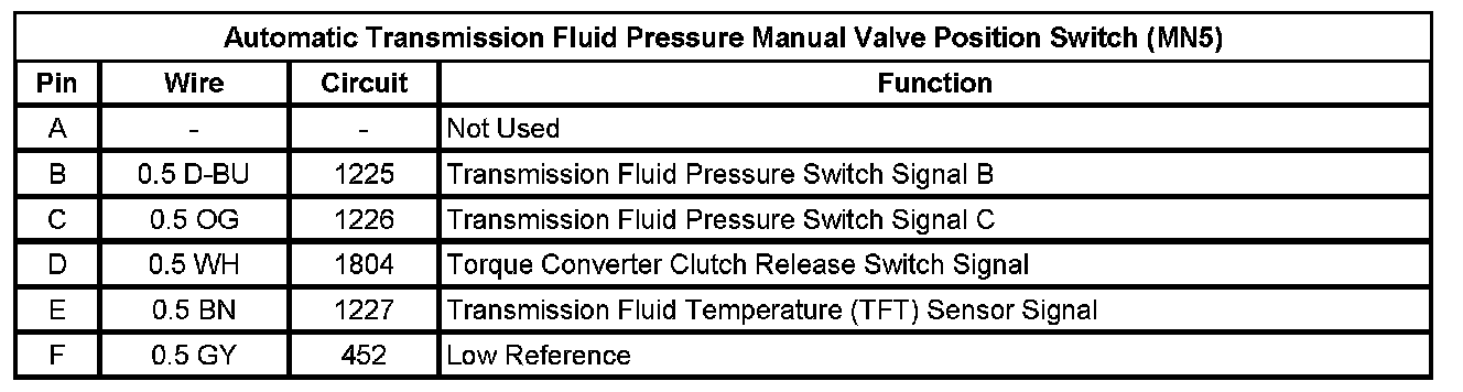 Automatic Transmission Fluid Pressure Manual Valve Position Switch (MN5)