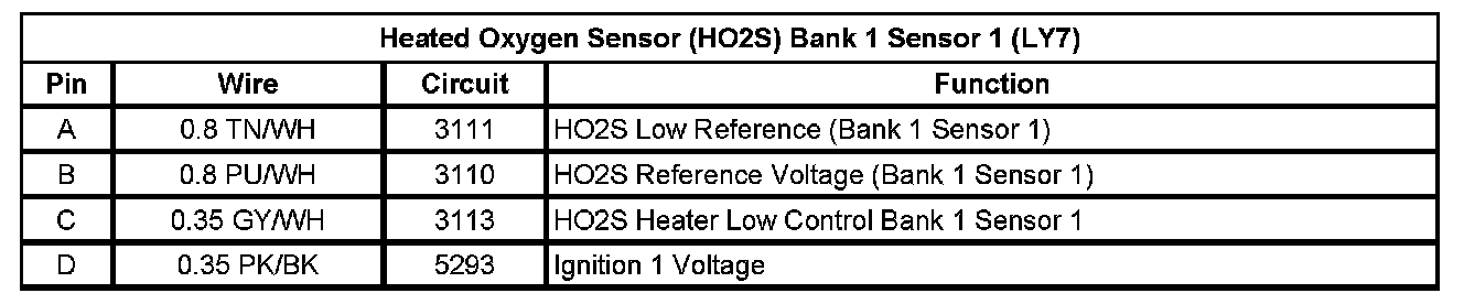 Heated Oxygen Sensor (HO2S) Bank 1 Sensor 1 (LY7)