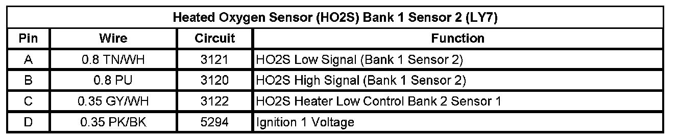 Heated Oxygen Sensor (HO2S) Bank 1 Sensor 2 (LY7)