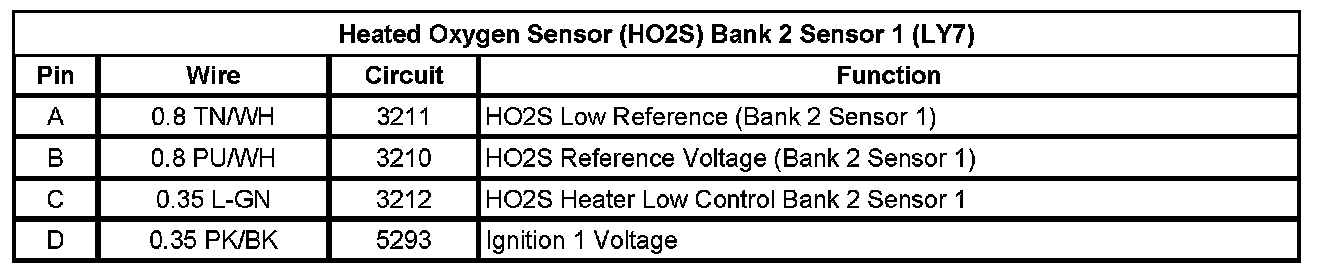 Heated Oxygen Sensor (HO2S) Bank 2 Sensor 1 (LY7)