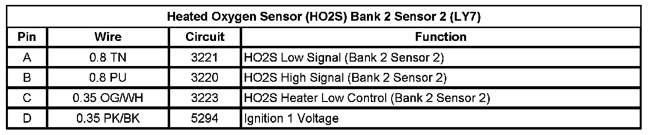 Heated Oxygen Sensor (HO2S) Bank 2 Sensor 2 (LY7)