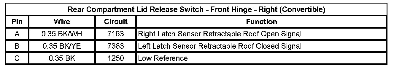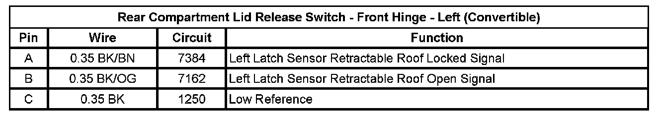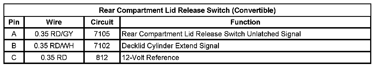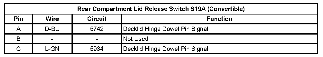 Rear Compartment Lid Release Switch S19A (Convertible)