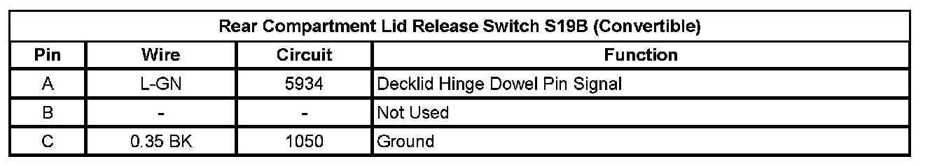 Rear Compartment Lid Release Switch S19B (Convertible)