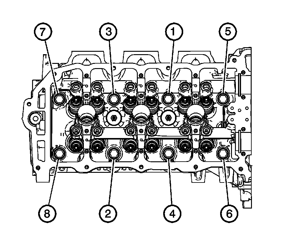 1. Tighten the M11 cylinder head bolts a first pass in sequence to 30 Nm (22 lb ft).