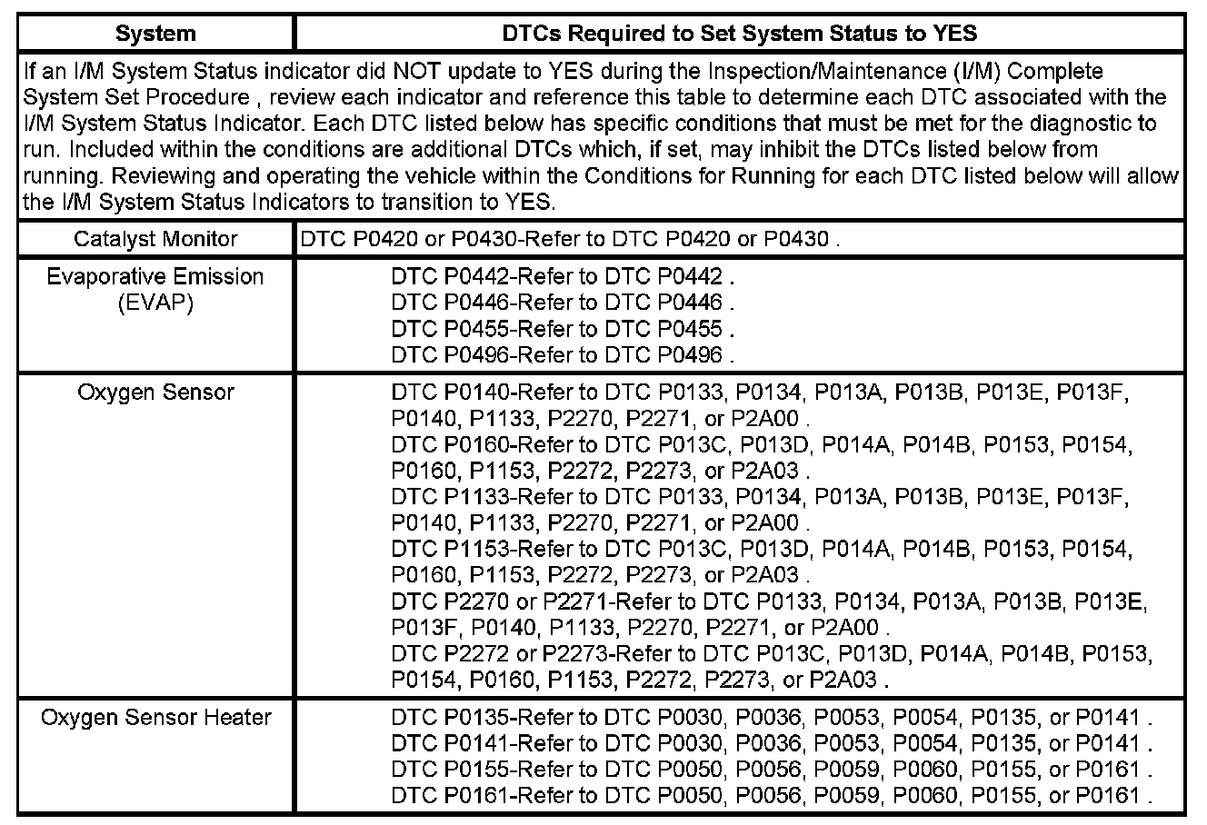 Inspection/Maintenance (I/M) System DTC Table