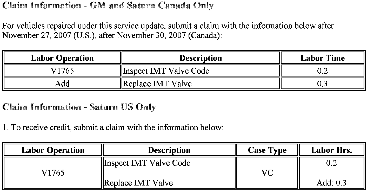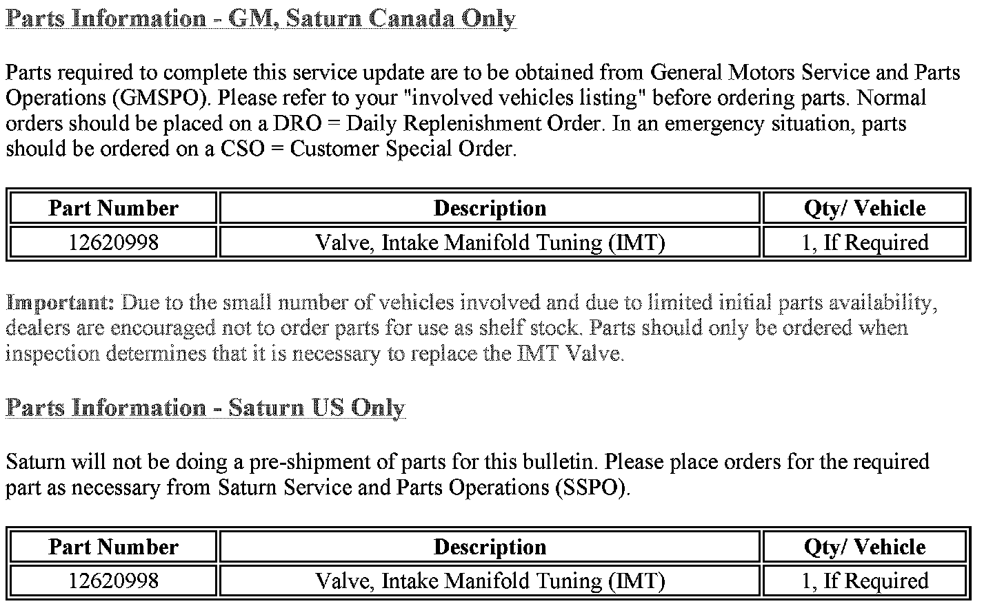 *Refer to the GM Messenger (US)/Dealer Communication (Canada) (Not shown with this copy of bulletin) attached icon List of Suspect Codes of IMT Valves to be Replaced. There is a total of 1,312 suspect IMT Valve Codes.