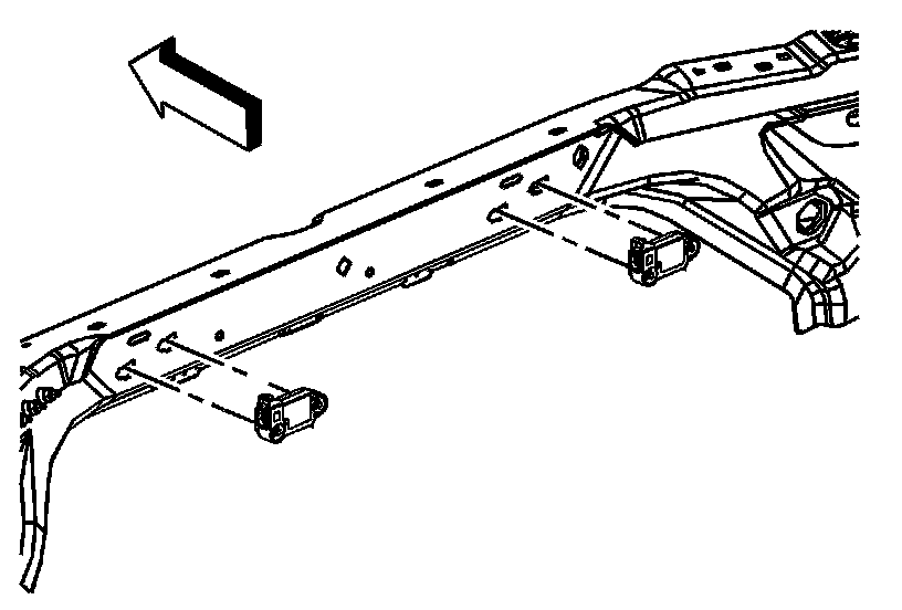 2. Install the 2 integral bolts that retain the front end sensor to the frame front crossmember.