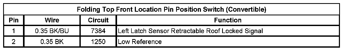 Folding Top Front Location Pin Position Switch (Convertible)