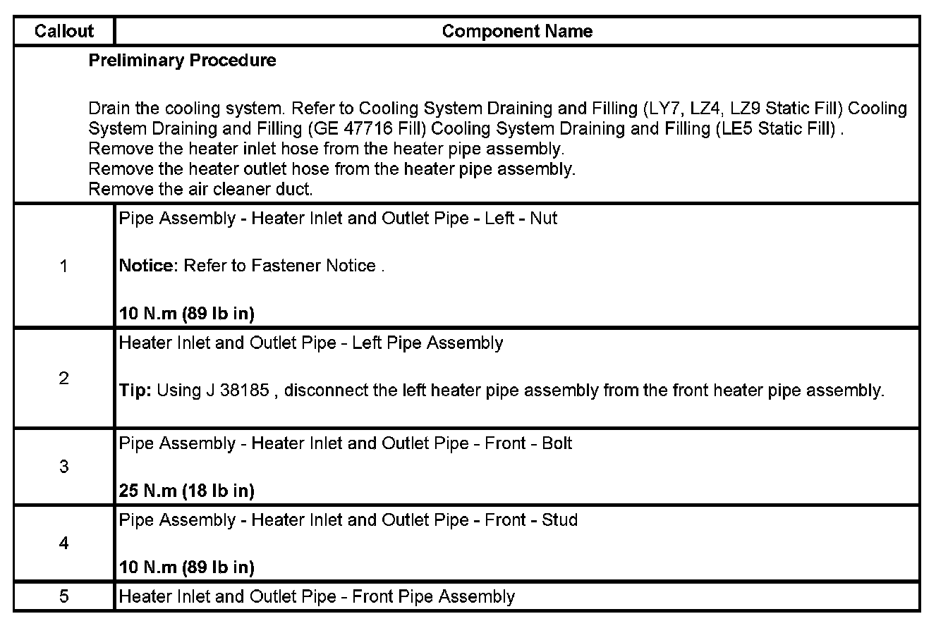 Heater Inlet Hose/Pipe and Heater Outlet Hose/Pipe Replacement (With RPO Code LZ4, LZ9)