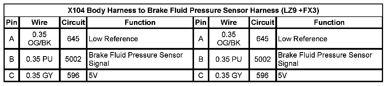 X104 Body Harness to Brake Fluid Pressure Sensor Harness (LZ9 +FX3)