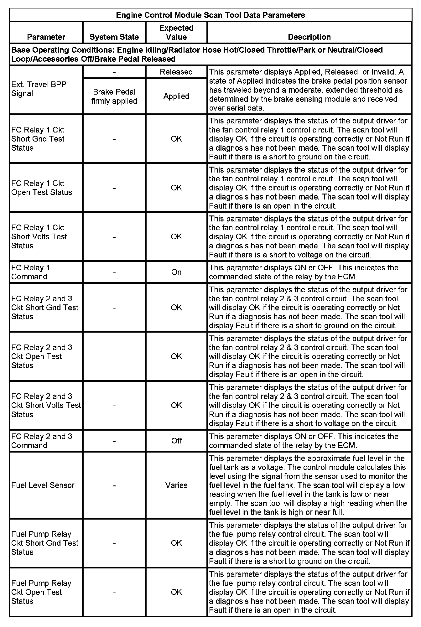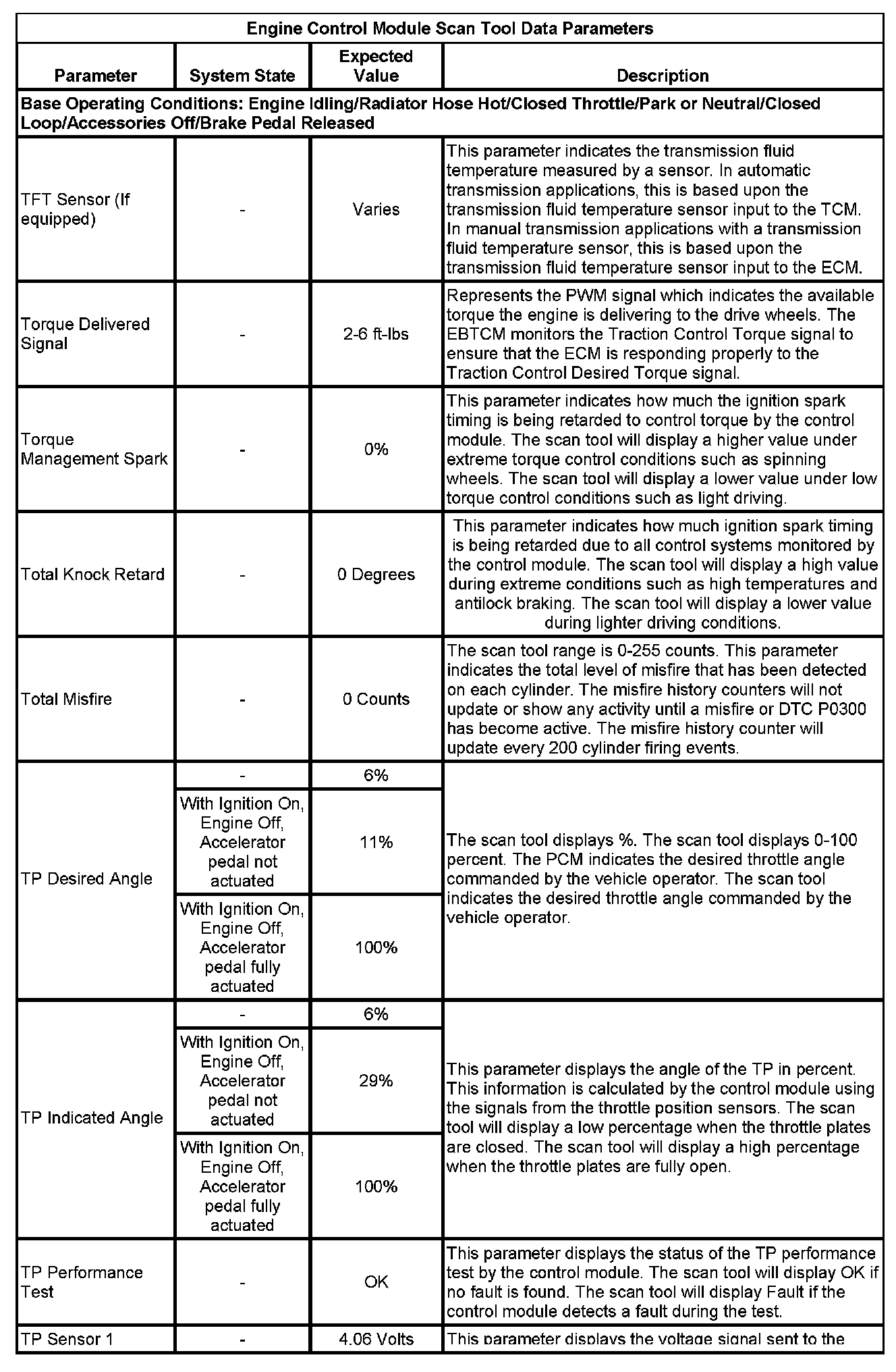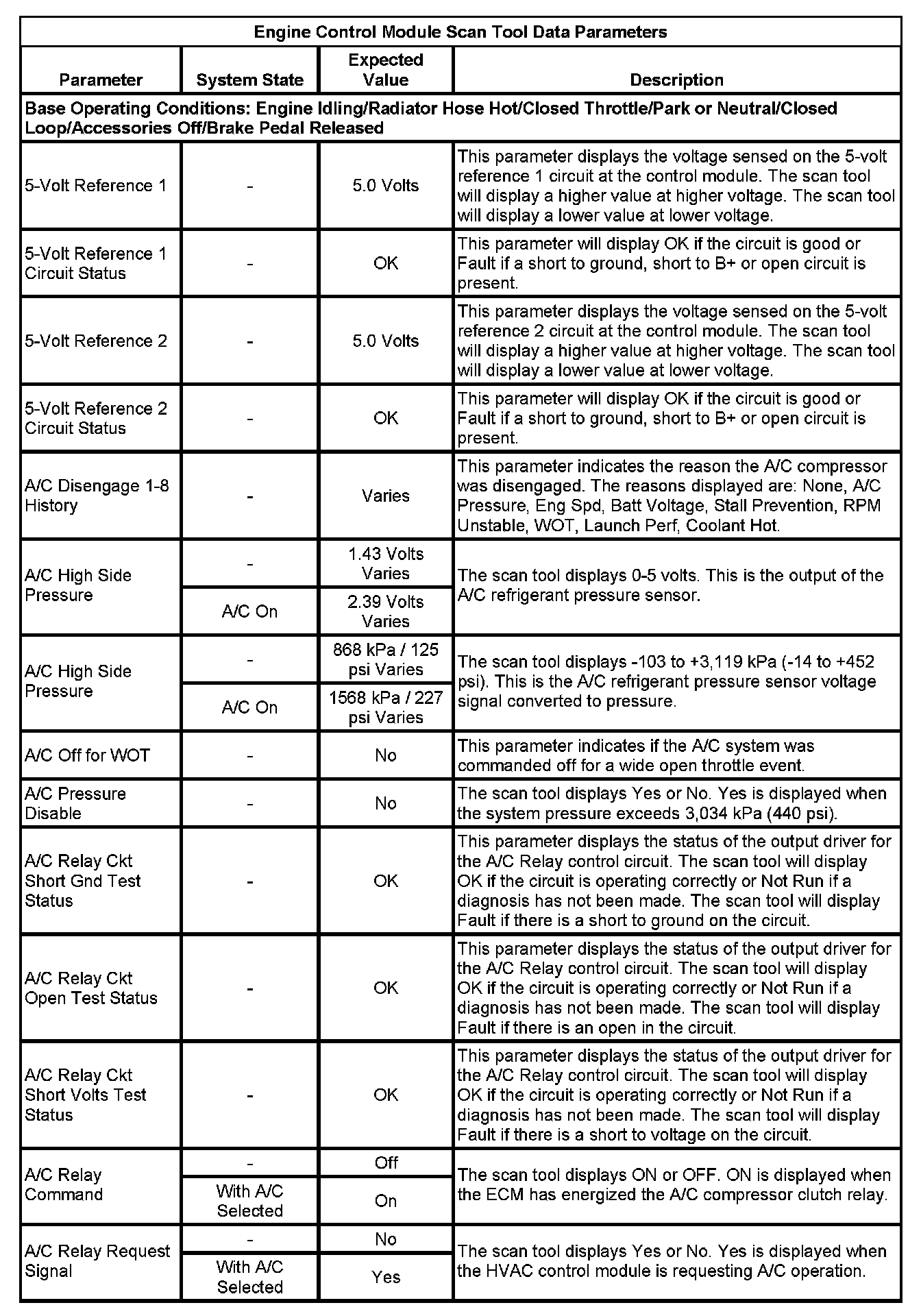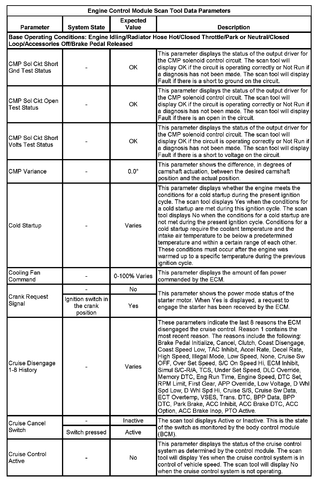 The Engine Control Module Scan Tool Data List contains all engine-related parameters that are available on the scan tool. The list is arranged in alphabetical order. A given parameter may appear in any one of the data lists, and in some cases may appear more than once, or in more than one data list in order to group certain related parameters together.