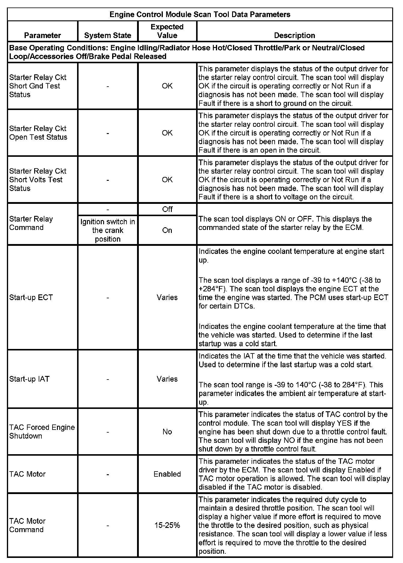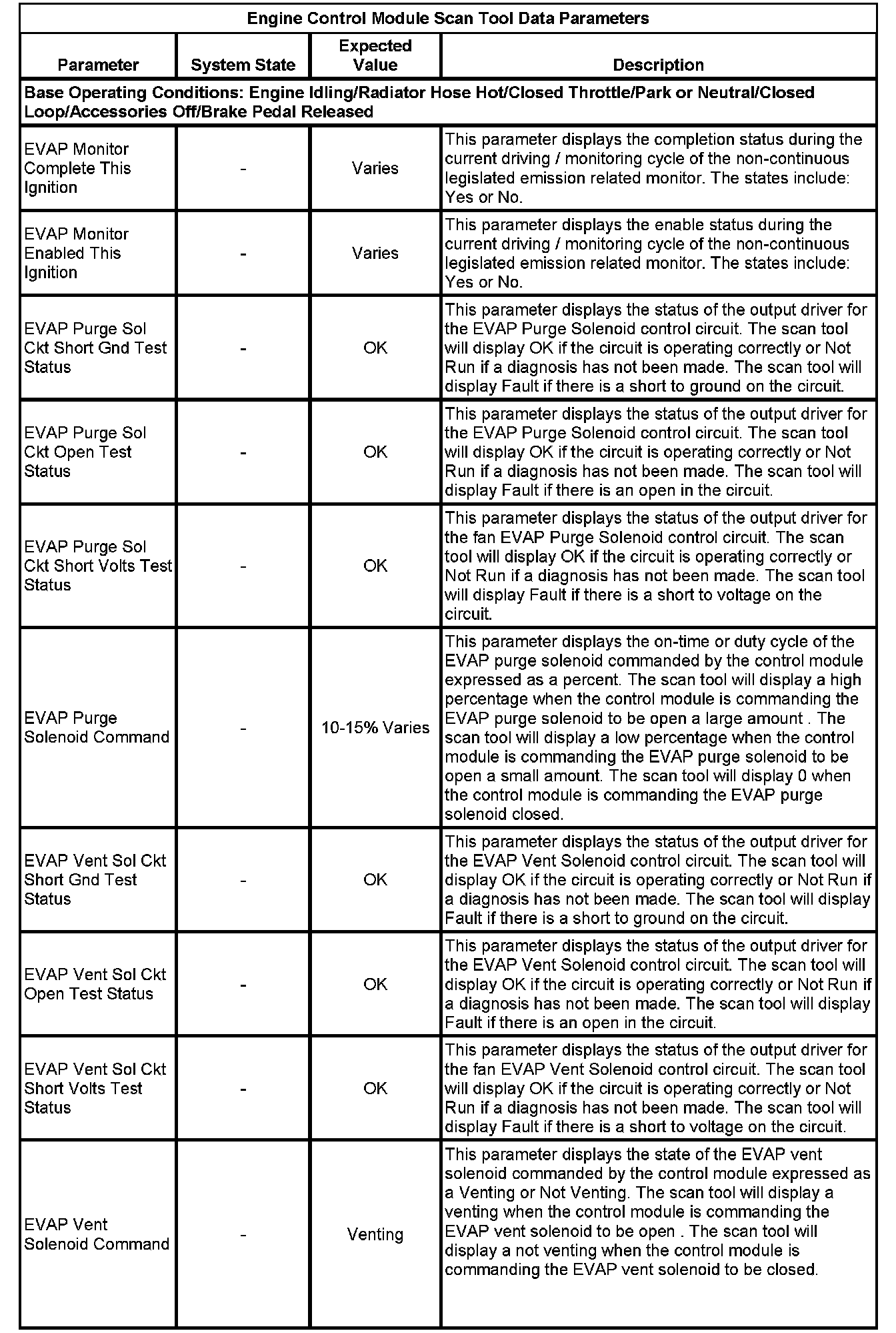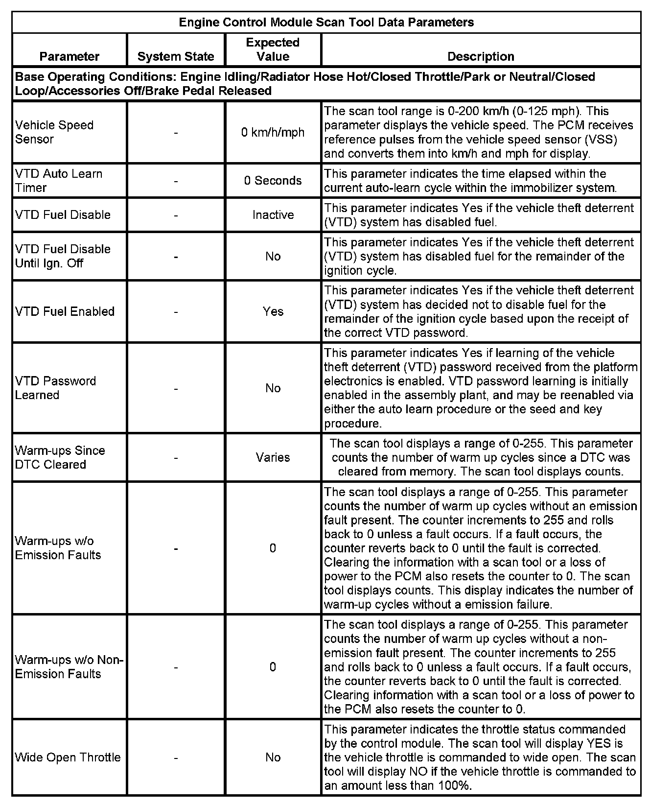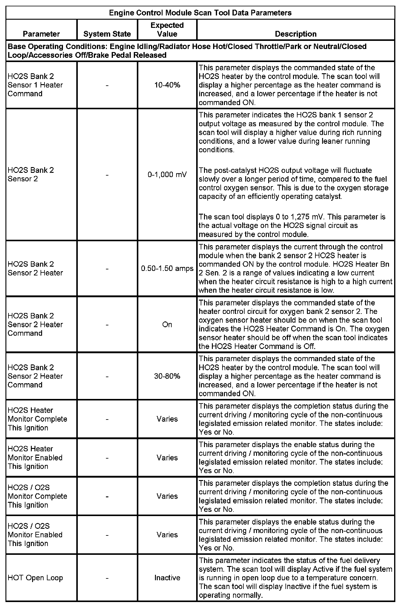 The scan tool values from a properly running engine may be used for comparison with the engine you are diagnosing. The Engine Scan Tool Data List represents values that would be seen on a normally running engine.