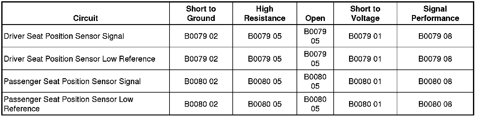 - Passenger Seat Position Sensor Circuit Short to Battery or Open