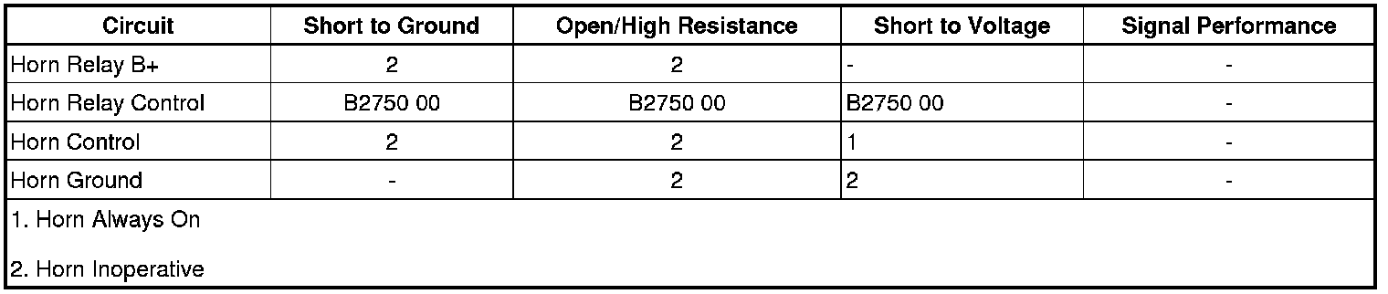 Command the horns ON and OFF with the scan tool. The horns should turn ON and OFF when changing between the commanded states.