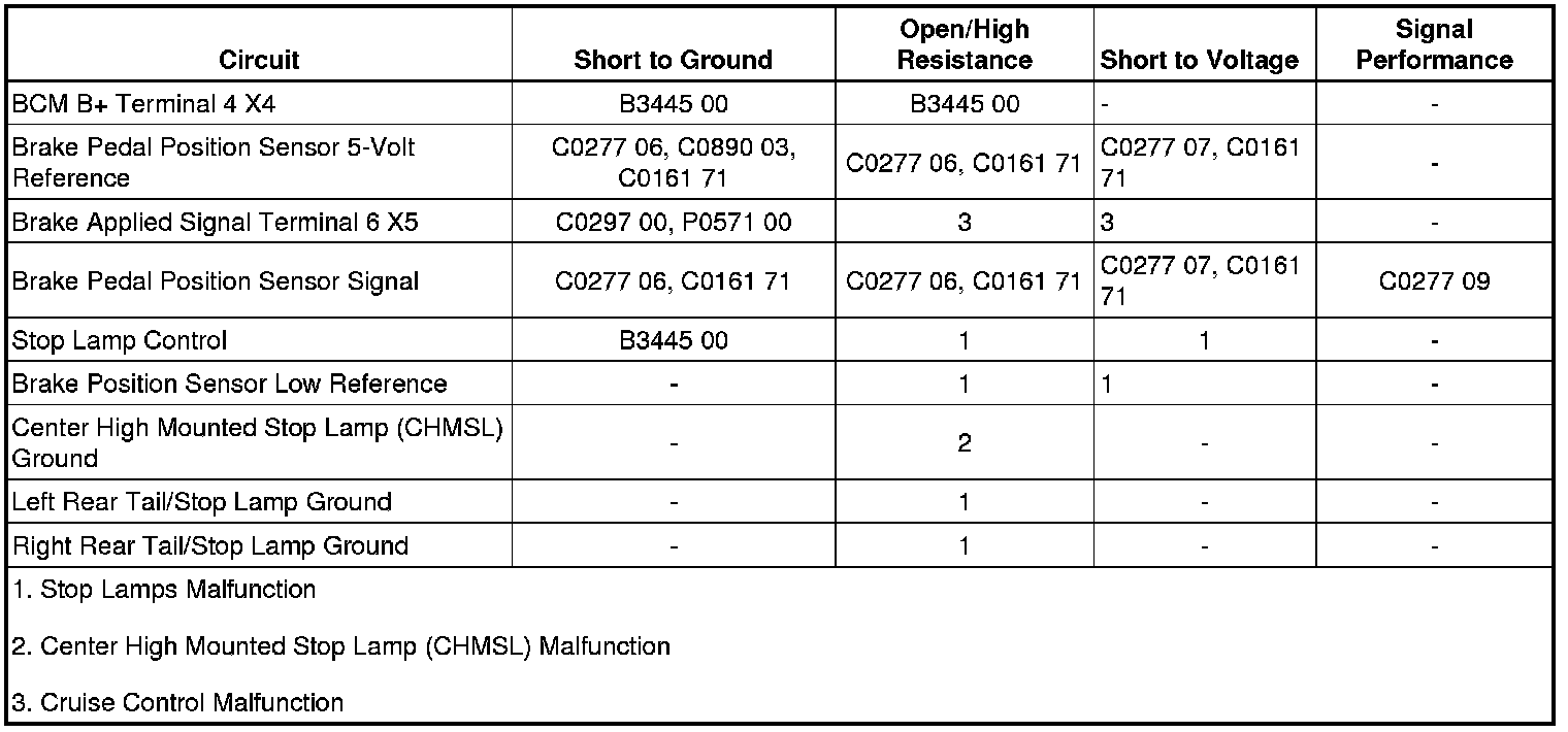 * The DTC will set when the BCM detects a short to ground in the stop lamp control circuit when the stop lamps are being commanded ON.