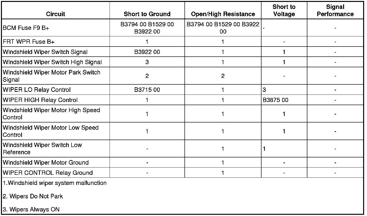The BCM detects a short to ground in the wiper relay control circuit.