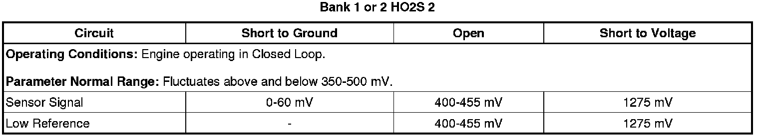 2. Ignition ON, verify that the scan tool HO2S voltage parameter is between 350-500 mV.