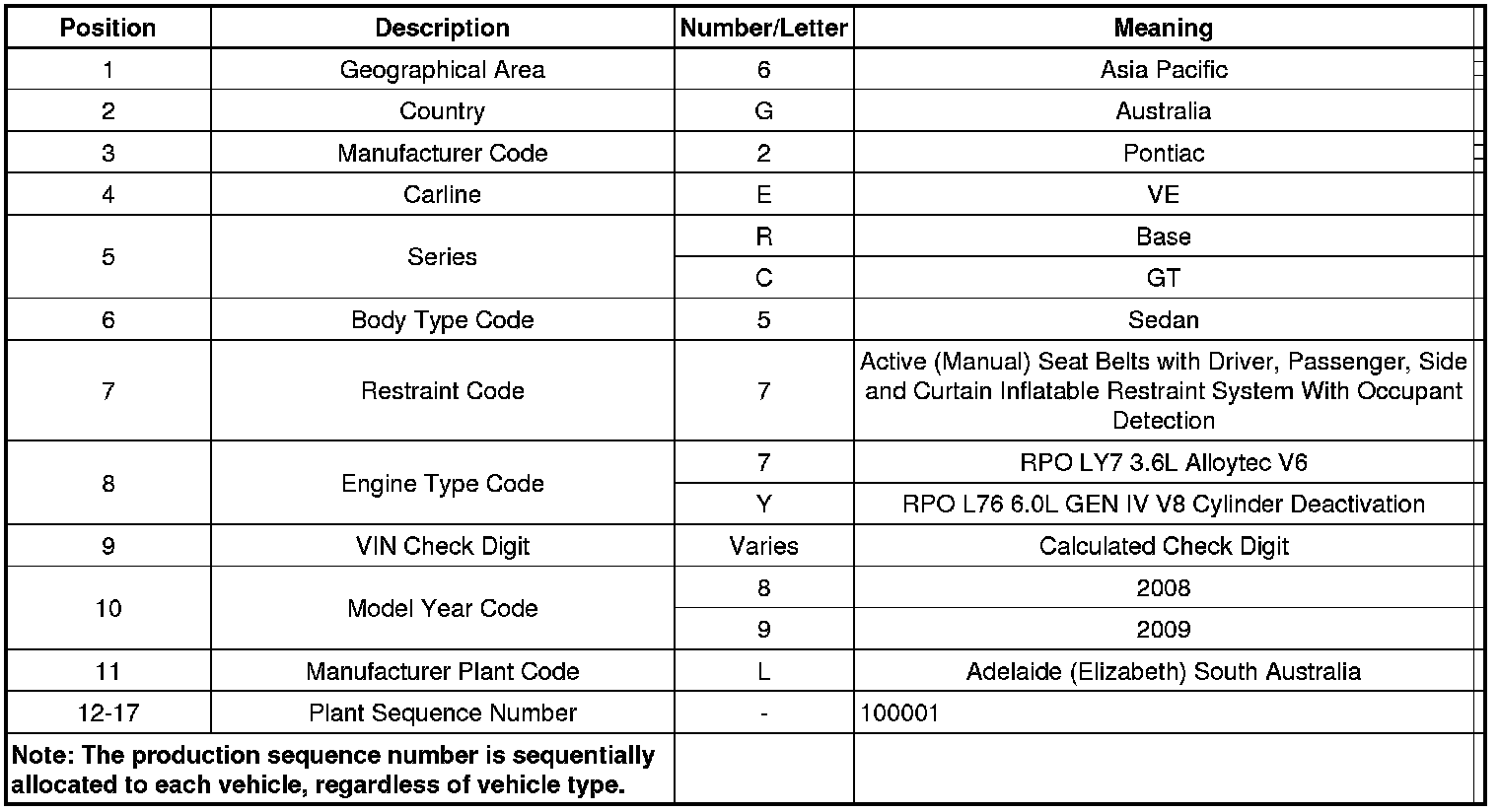 Vehicle, Engine and Transmission ID and VIN Location, Derivative and Usage
