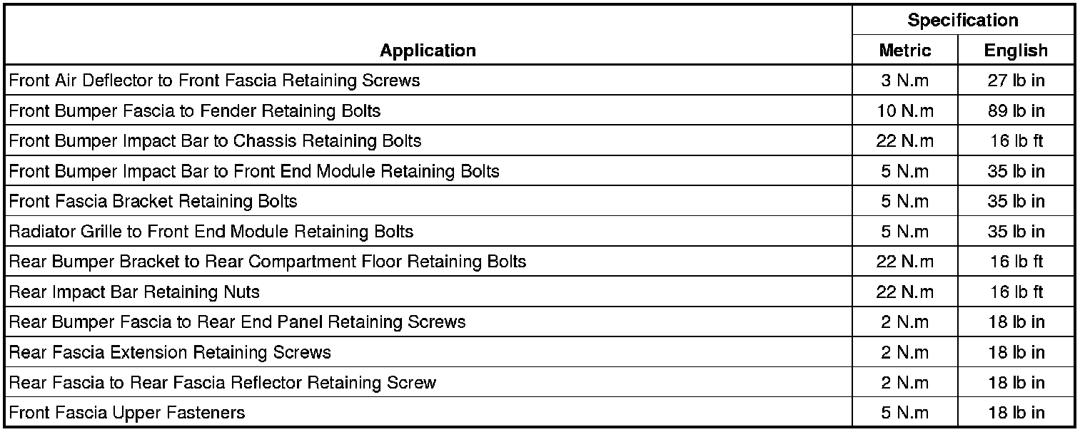 Bumper: Specifications