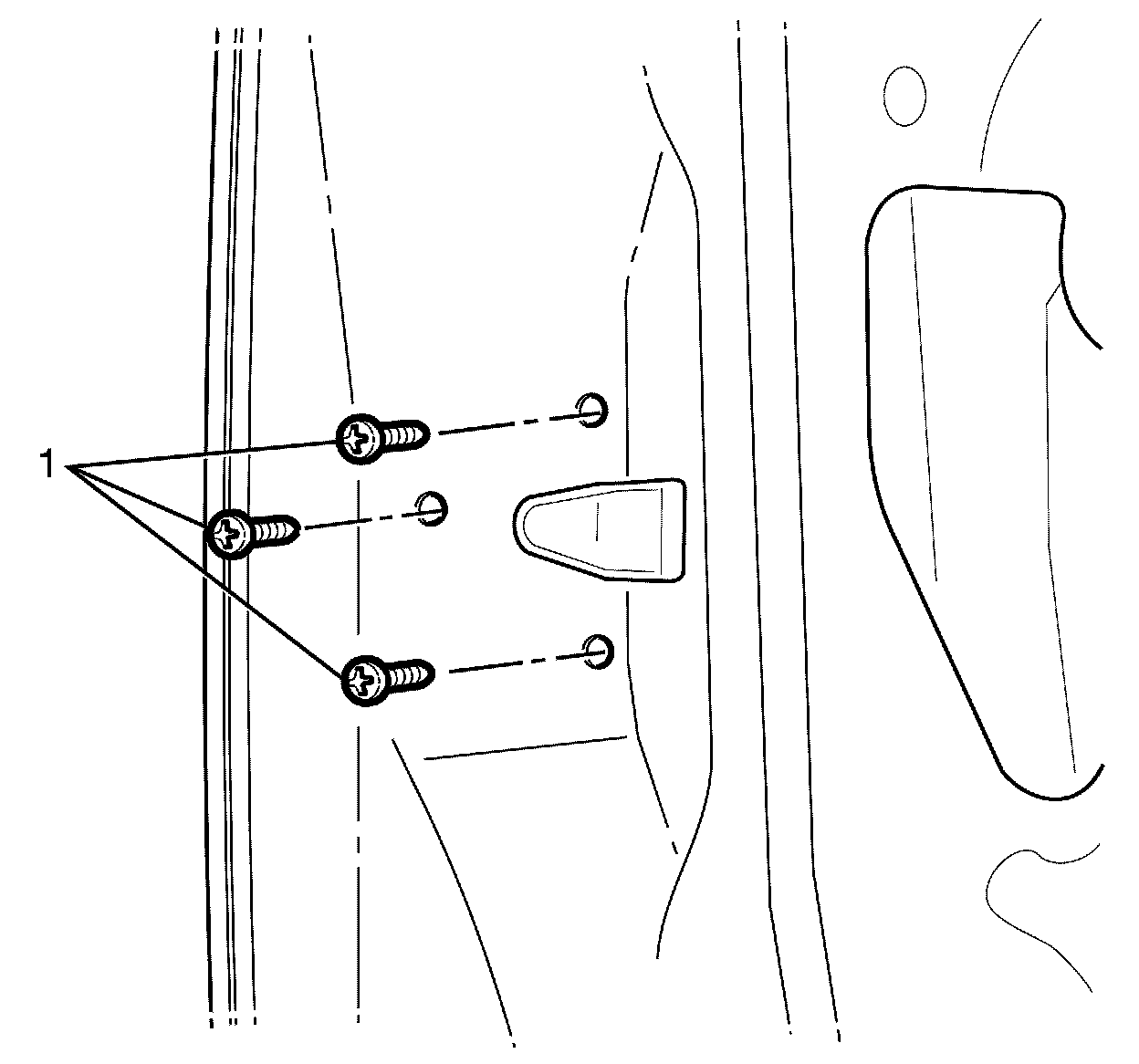 7. Remove the door latch to door retaining screws (1).