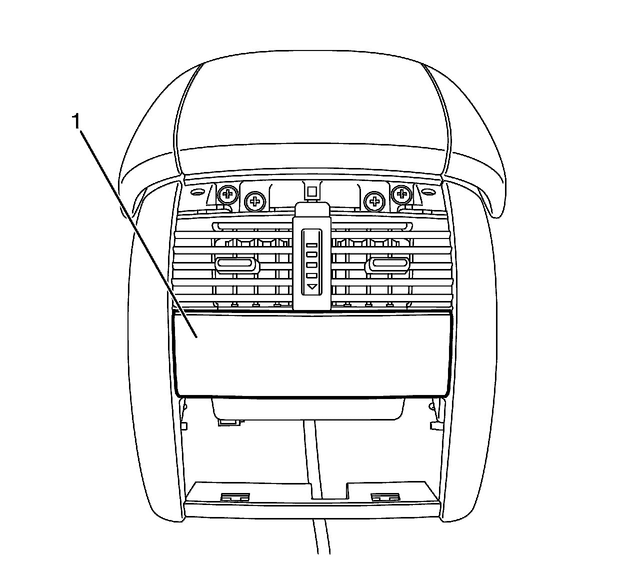 1. Remove the front floor console upper end panel (1), by lifting from the base of the trim panel to disengage.