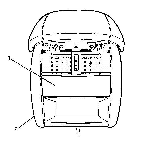 2. Remove the rear floor console lower trim panel (1) from the end panel (2).
