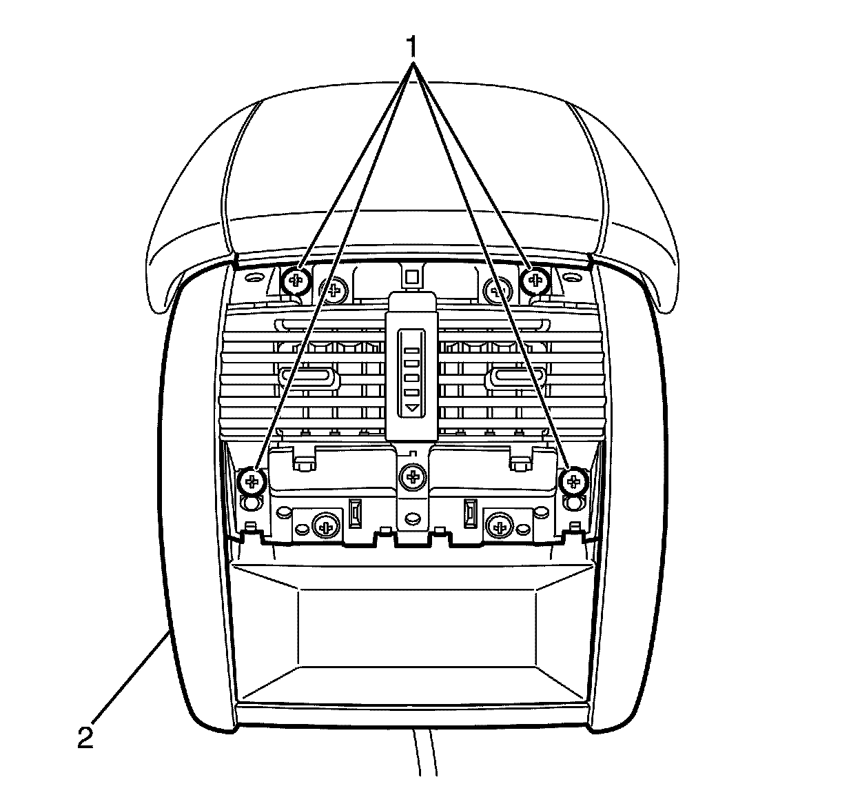 Important: From inside the front floor console compartment carefully lift upwards with a small flat blade screwdriver to detach the retaining clips. Close the armrest and remove the front floor console upper end panel (1).