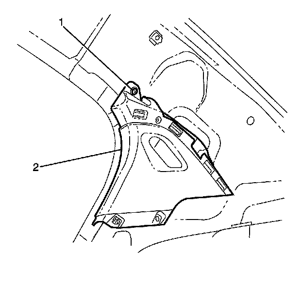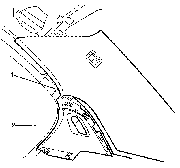 2. Install the upper quarter trim panel (1) by firmly pushing it into the lower section of the trim panel (2).