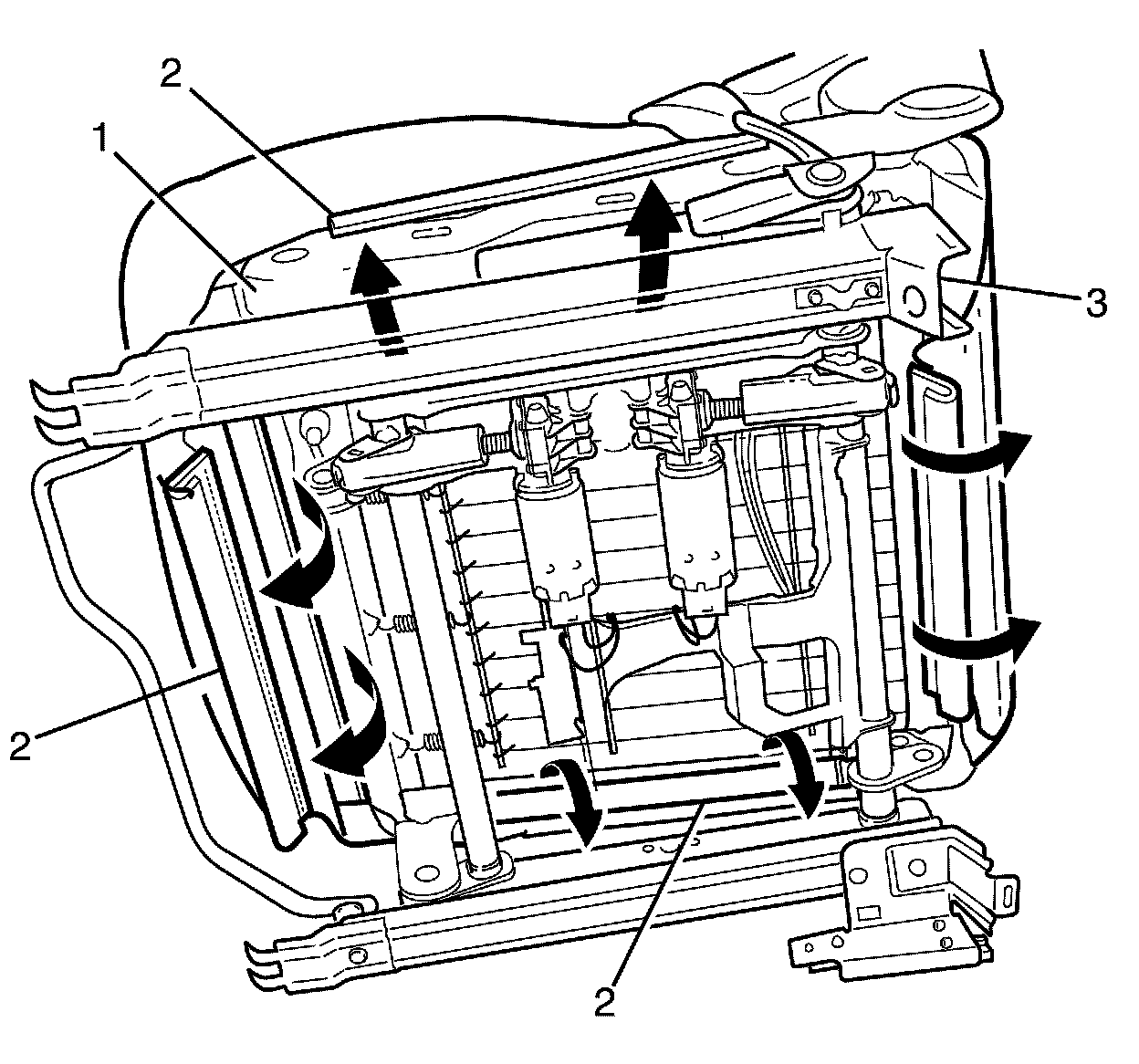 5. Remove seat-back frame assembly. Refer to Front Seat Back Frame Replacement (Front Seat Back Frame Replacement) .