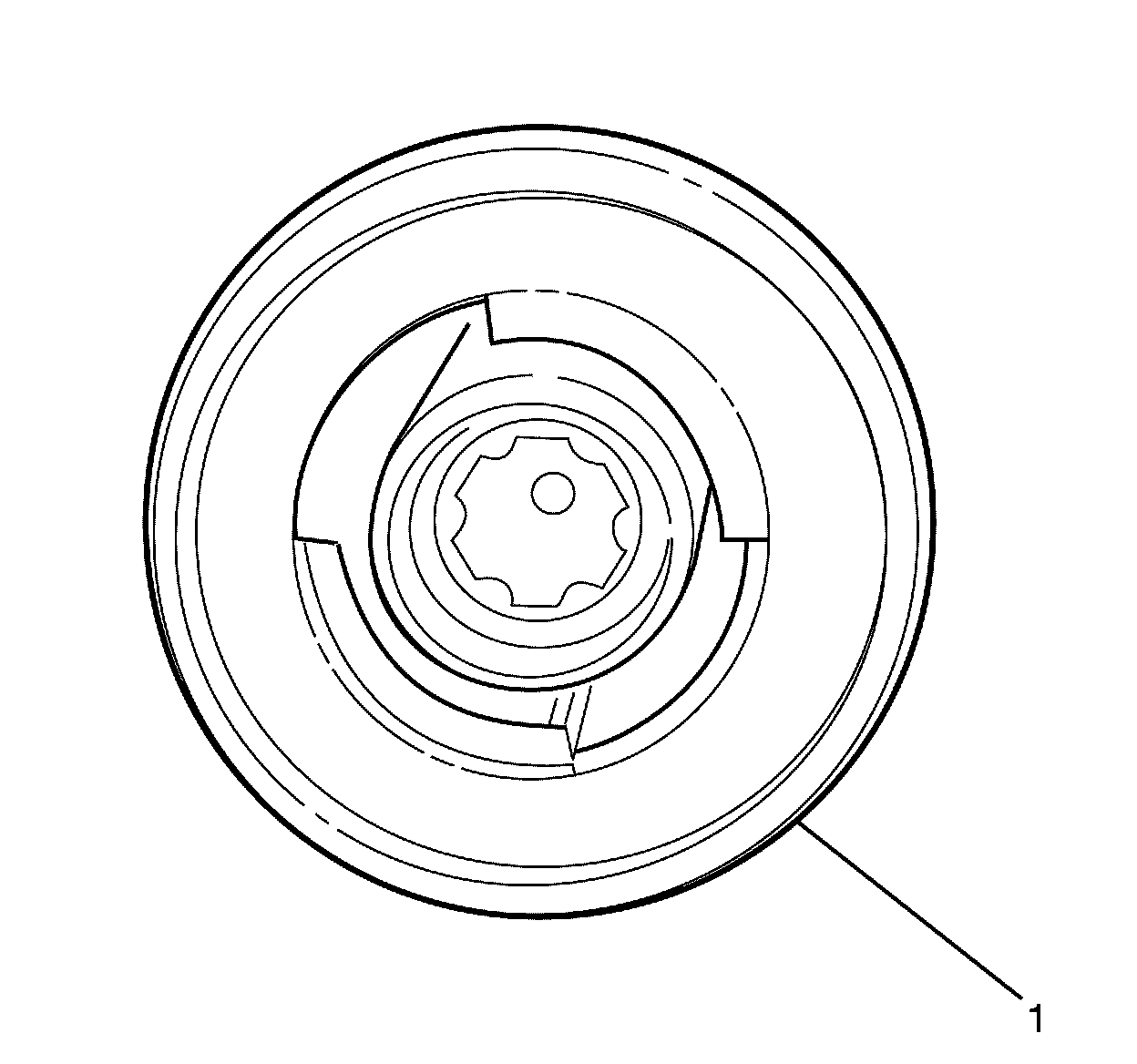 1. Install the deflector ring (1) onto the adjustment shaft.