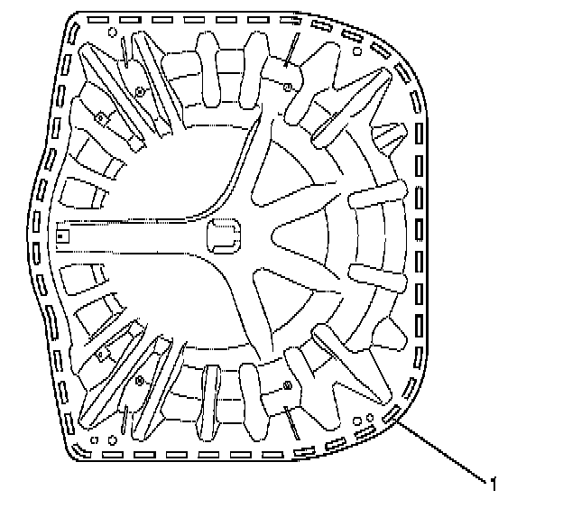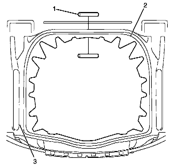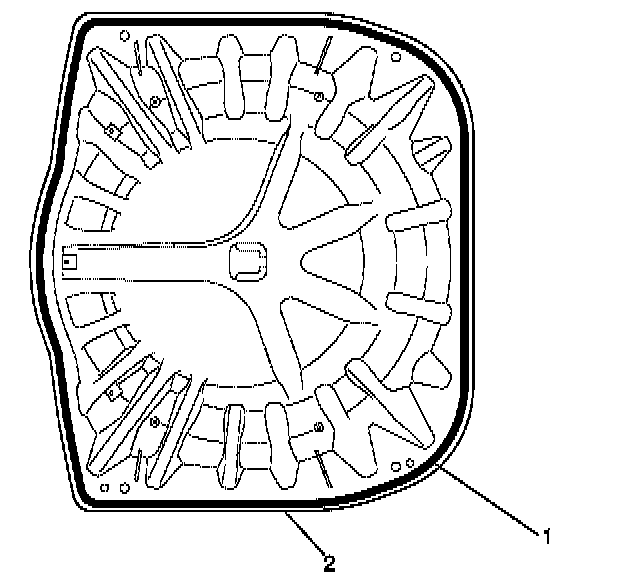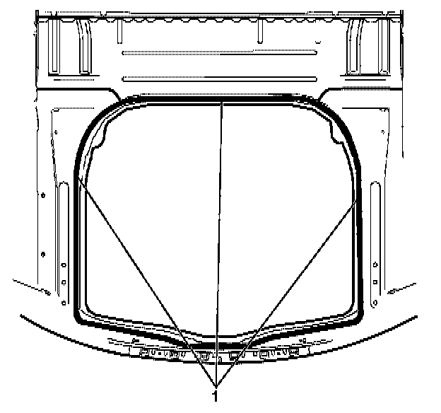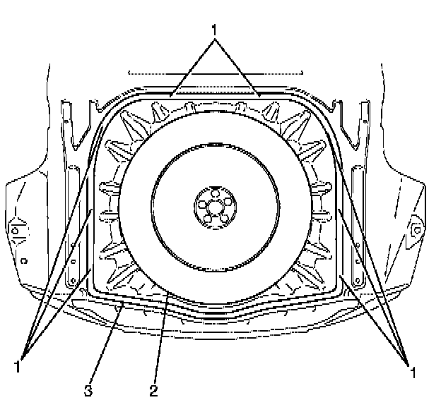 1.Apply a continuous bead of urethane GMW3041 (1) or equivalent approximately 10 millimetres in diameter to the bonding area of the spare wheel carrier (2).