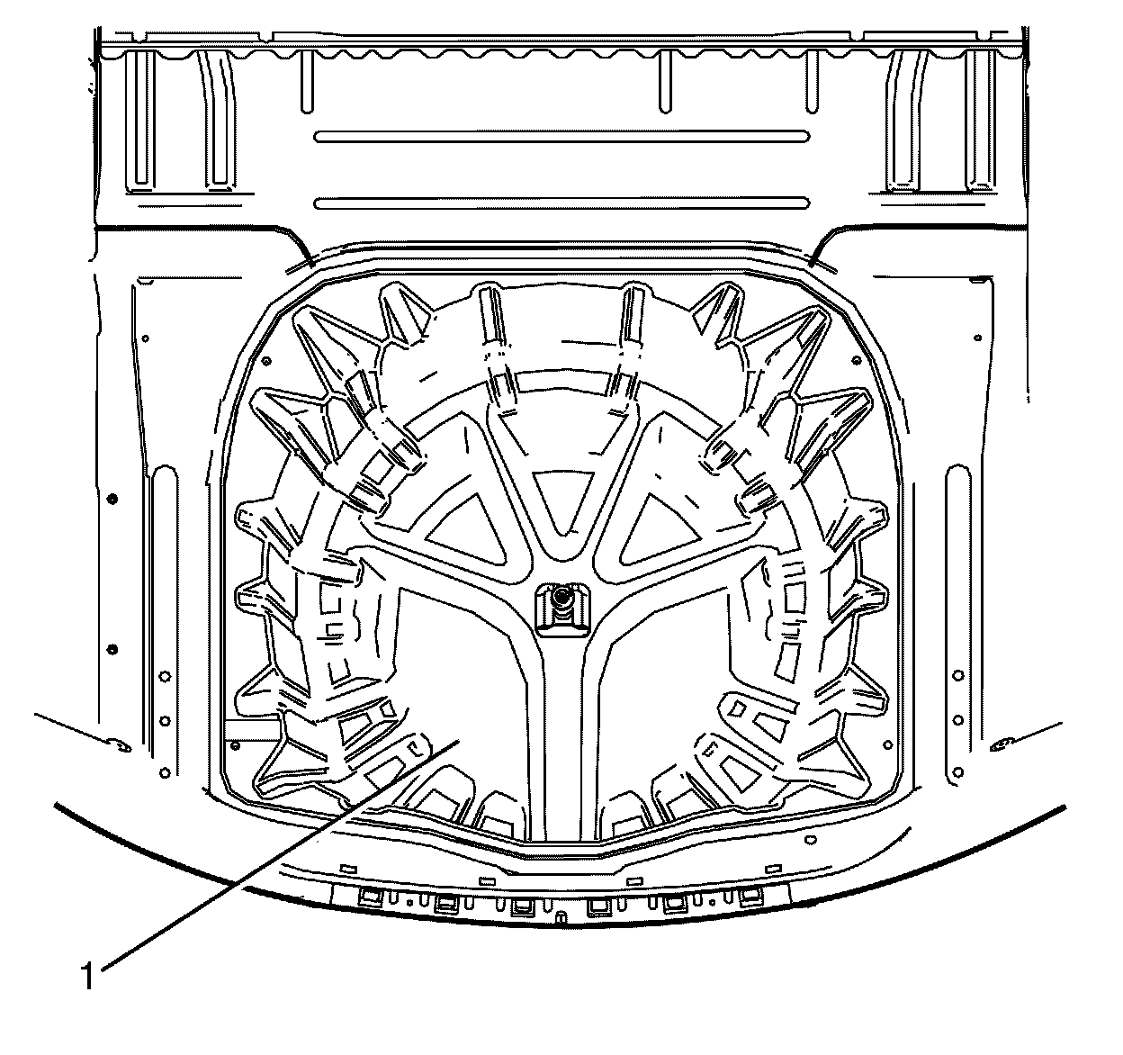 1.Remove the cutout section of the spare wheel carrier panel (1) from the vehicle.