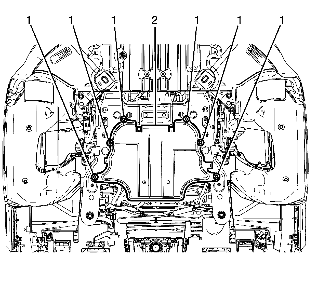 2.Install the engine splash shield to front subframe retaining screws (1).