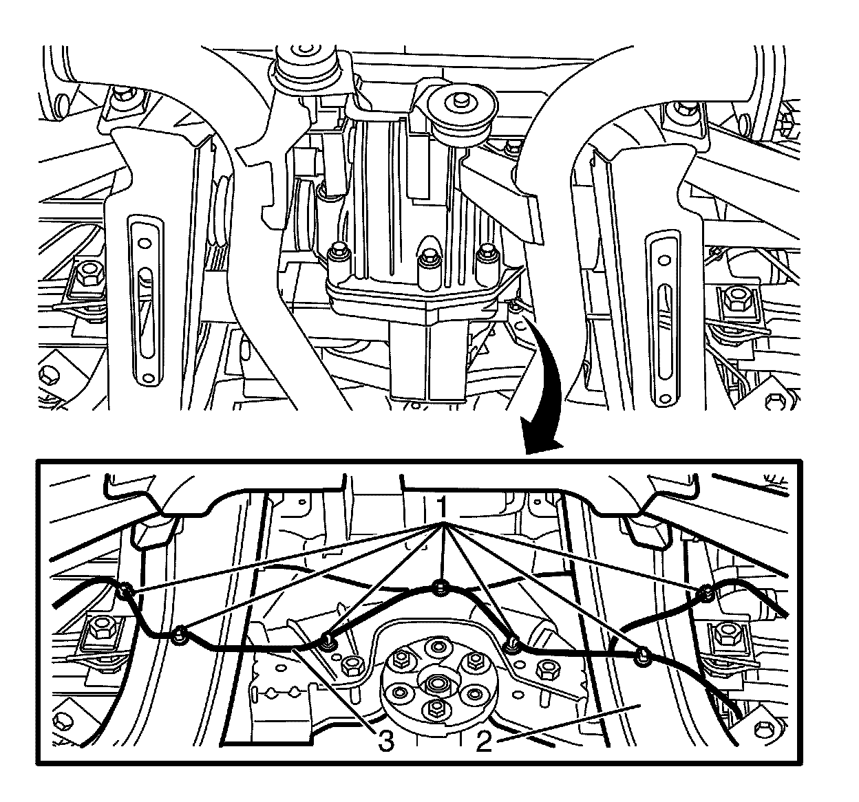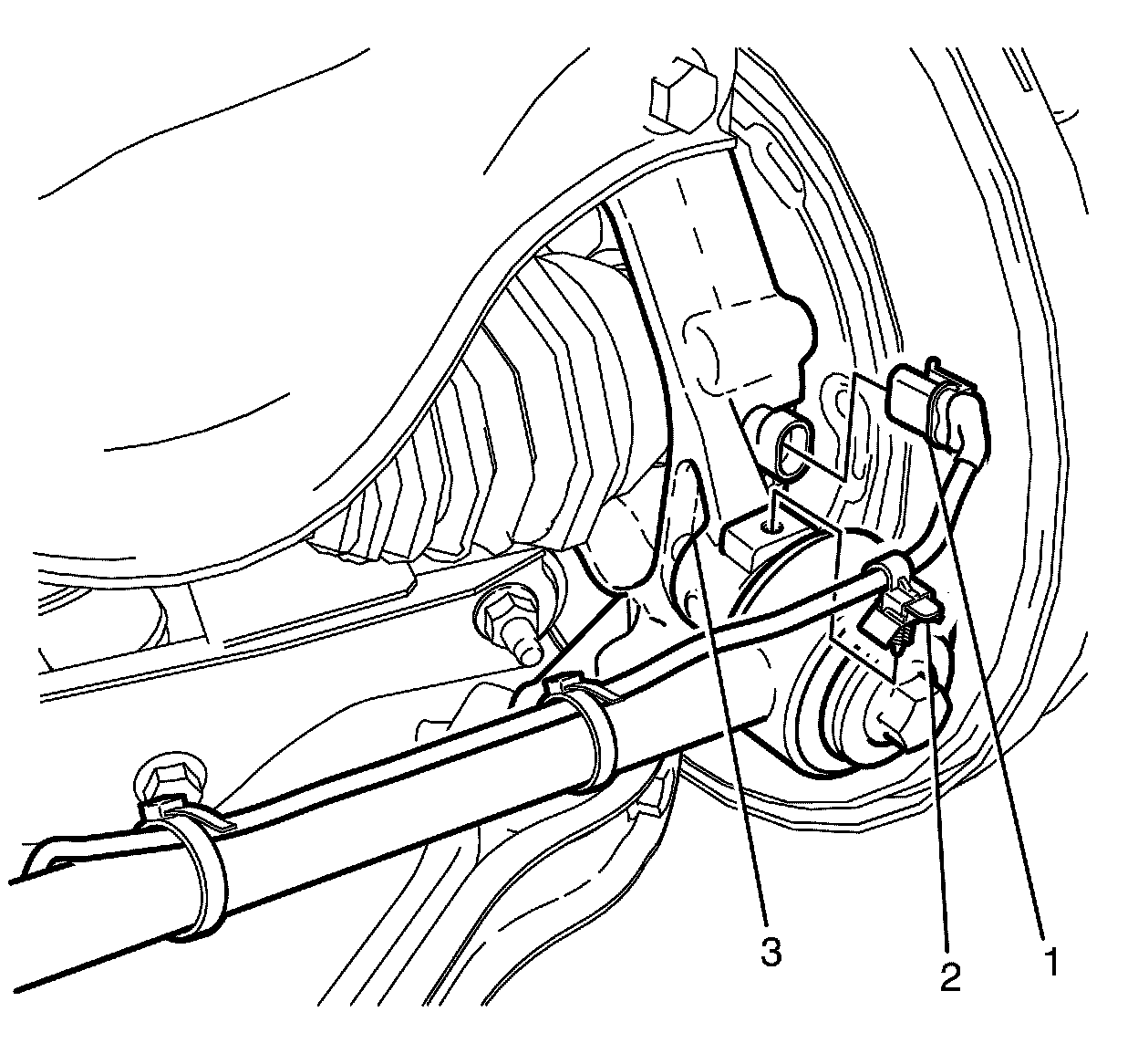 Important: Make sure the routing of the wheel speed sensor jumper harness (3) is routed in its original location.