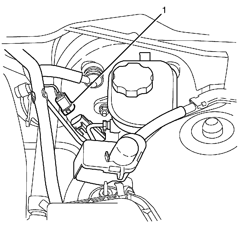 2. Disconnect the brake booster vacuum sensor electrical connector (1).