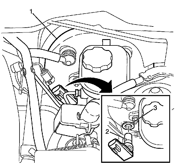 1. Install the NEW booster vacuum sensor rubber grommet (3) to the brake booster (1).
