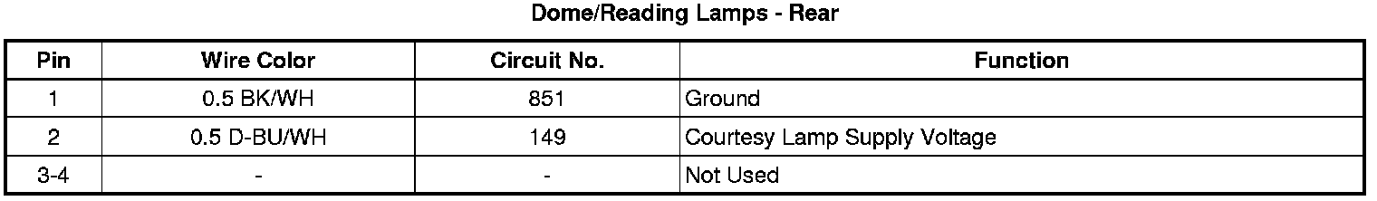 Dome/Reading Lamps - Rear