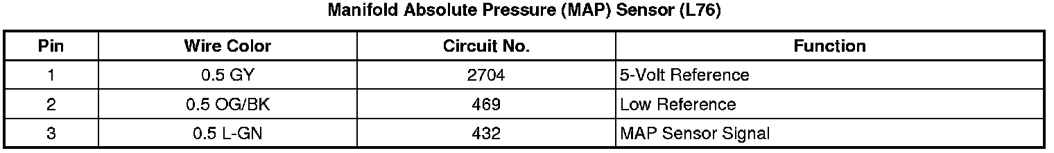 Manifold Absolute Pressure (MAP) Sensor (L76 - Gas 8 Cyl, 6.0L SFI, V8)
