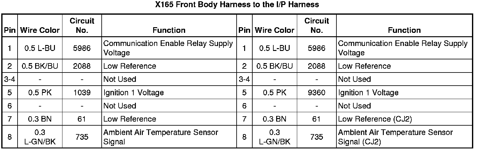 X165 Front Body Harness to the I/P Harness