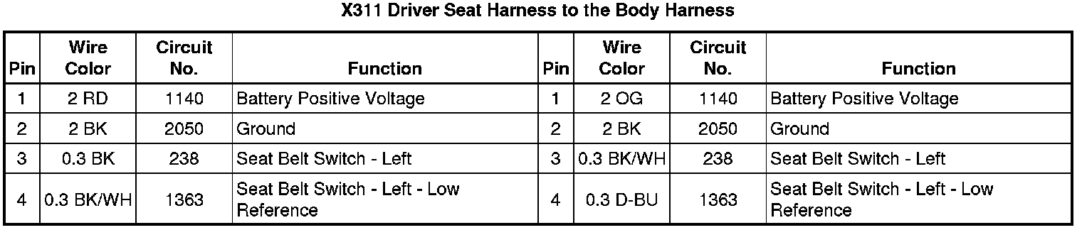 X311 Driver Seat Harness to the Body Harness