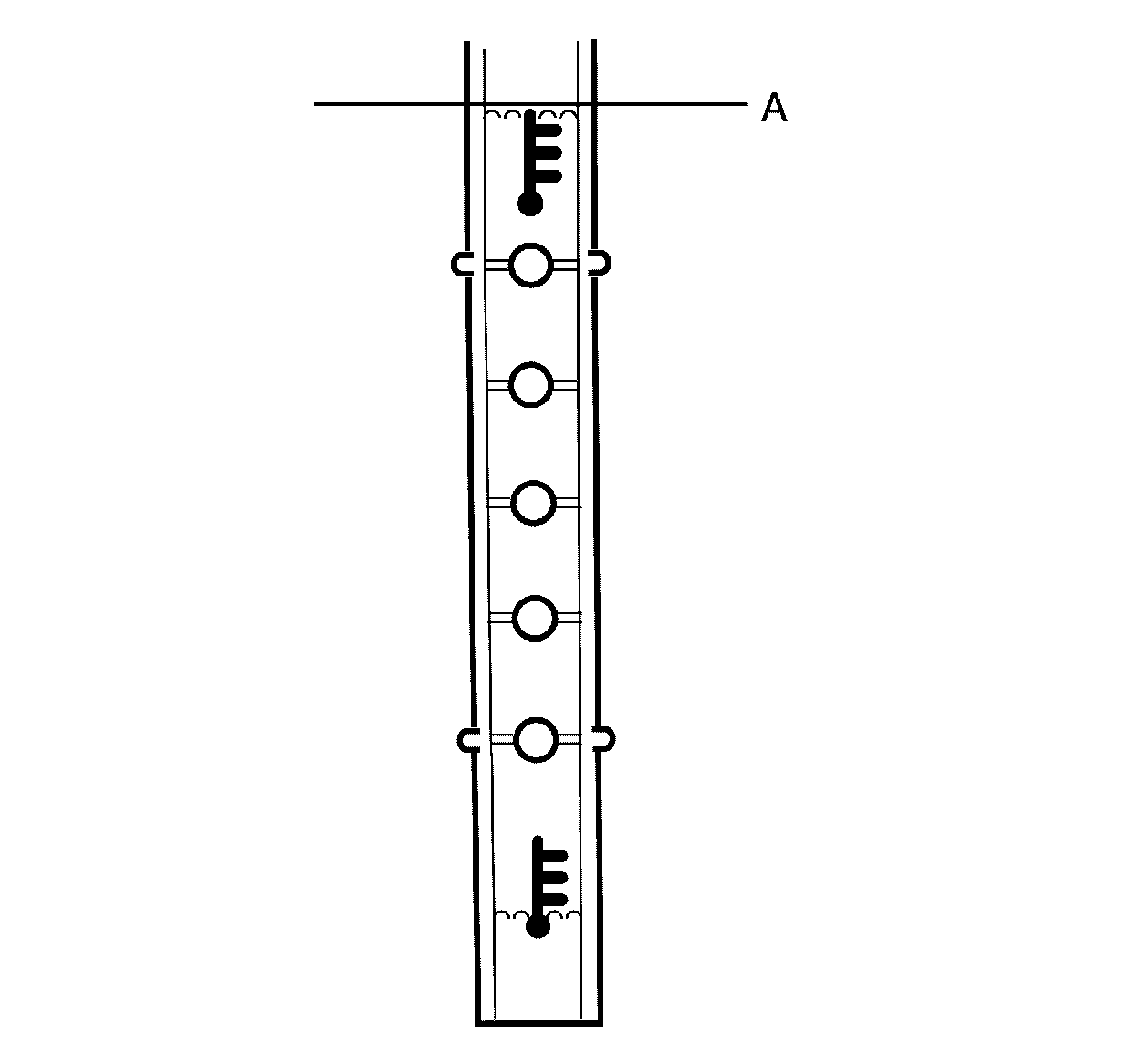 11. Check coolant in coolant recovery reservoir. Adjust coolant in the reservoir to the top of the graphic mark (A) on the dipstick.