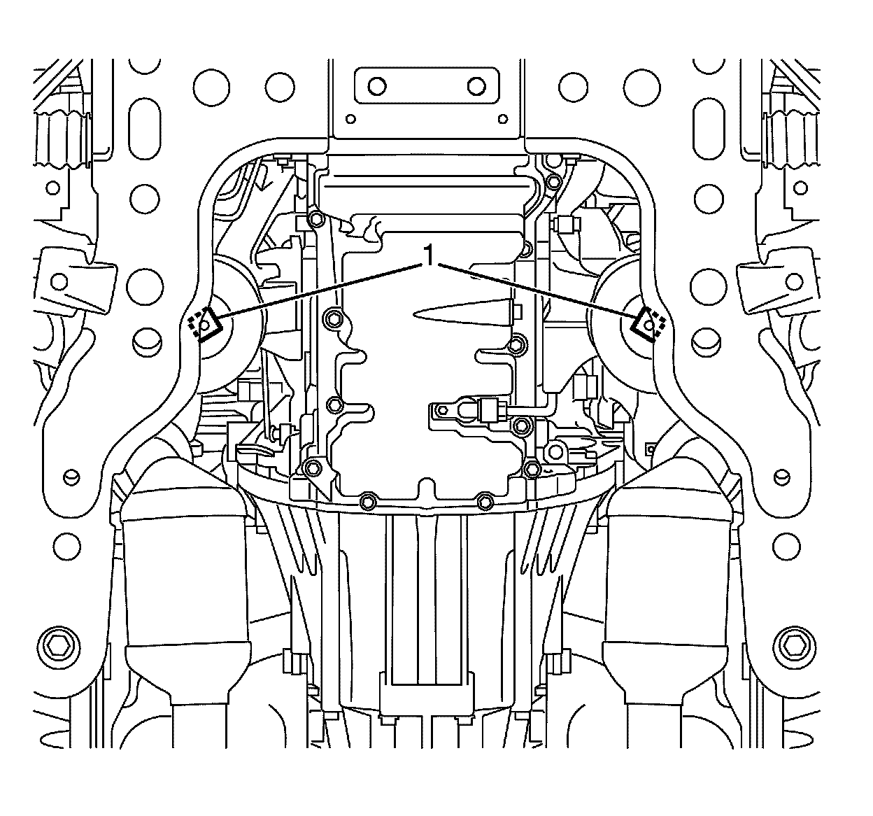 3. Remove the engine mount to front subframe retaining nuts (1).