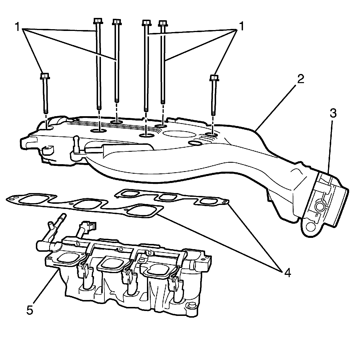 Important: The upper intake manifold gaskets (4) must be discarded after removal.