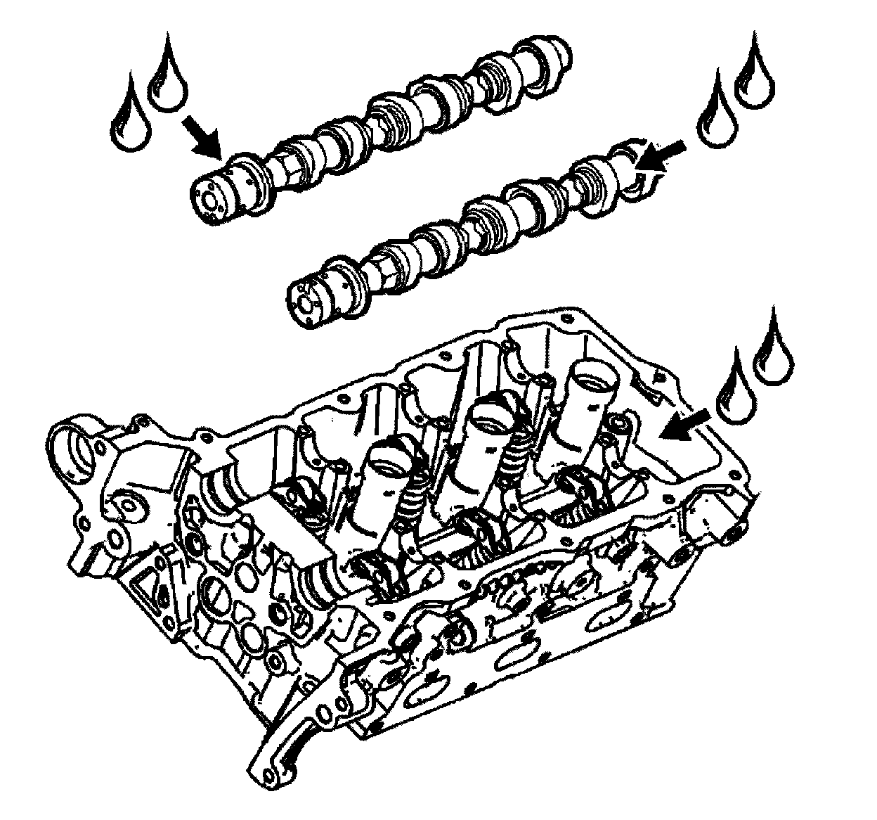 8. Apply a liberal amount of engine oil to the camshaft bearing caps.