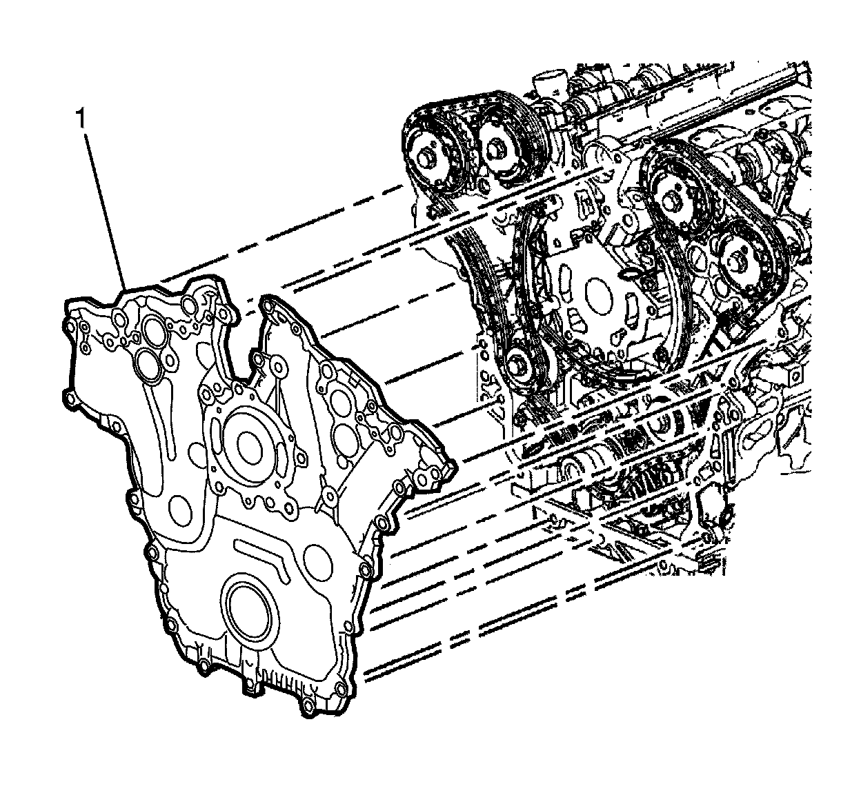 4. Place the engine front cover (1) onto the EN 46109 and slide into position.