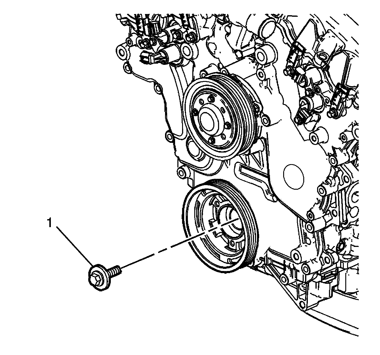 4. Install the crankshaft balancer to crankshaft retaining bolt (1).